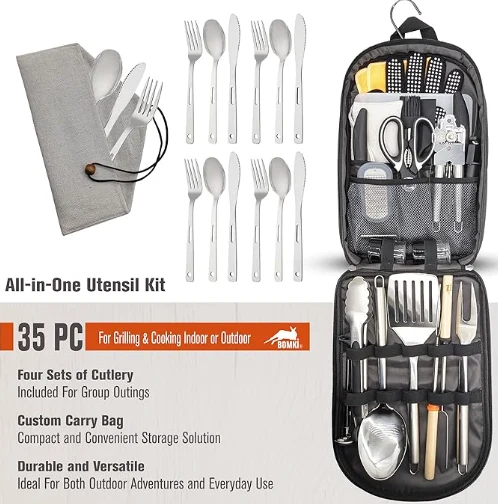 O fafo atu o le tolauapiga o loʻo teu ai pepa kuka o le 35 PC o loʻo fai ai le pepa kuka. O se fofo o loʻo lelei i luga o lau galuega i fafo. E aofia ai se tolauapiga tolauapiga nofoa ma tolauapiga o meaʻai kuka, na tumu uma i totonu o le matata ma le lua potu i tua. O le seti ua mamanuina ina ia mafai ona ave i lau tolauapiga i lau tolauapiga kuka mea taua, fai se faʻaopopoga tele atu i lau tolauapiga kia